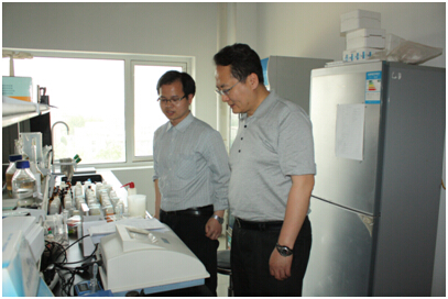 隨后,領導們參觀了儀器試劑生產中心,就有關儀器生產中可能出現的問題,進行了詳細的詢問,在桑總的解答介紹中,于軍司長還親自試用了我司生產的