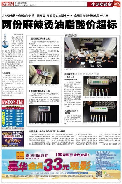 法制晚報報道兩份麻辣燙油脂酸價超標