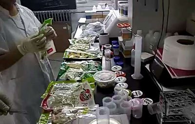 北京智云達技術工程師楊老師和王老師首先對不同樣品通過使用北京智云達自主研發生產的快速檢測產品:甲醛速測管,對泡椒鳳爪樣品進行甲醛含量的檢測。
