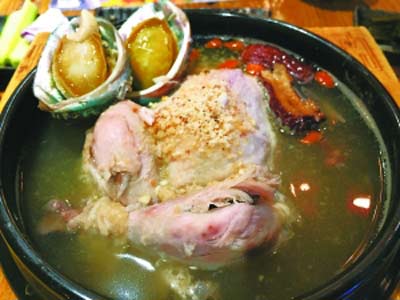 點評:參雞湯是一雞三吃,吃雞腹中的江米、品食材燉出的湯、吃童子雞細嫩的肉質,就兩家品牌來說,雖均未占全,但各自的優(yōu)點突出。值得注意的是,參雞湯味美,畢竟高麗參及其他添加的食材較為滋補,須注意食用的頻度。