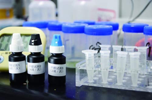 北京智云達(dá)技術(shù)工程師楊老師和王老師首先將樣品粉碎,再通過使用北京智云達(dá)自主研發(fā)生產(chǎn)的快速檢測(cè)產(chǎn)品:甲醛速測(cè)盒,對(duì)樣品溶液中的甲醛含量進(jìn)行檢測(cè)。
