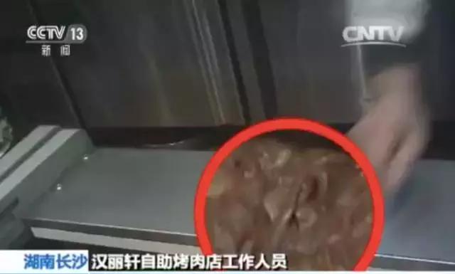 再來(lái)回顧一下,去年12月,湖南經(jīng)視記者臥底長(zhǎng)沙一家漢麗軒門店,就發(fā)現(xiàn)這家49元隨便吃的自助烤肉店,用鴨肉冒充牛肉,經(jīng)過(guò)特殊醬料腌制后,顧客根本不會(huì)察覺(jué)。