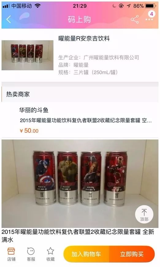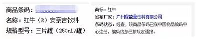 經過快速消費品精英俱樂部的多方調查,所有信息都指向了廣州曜能量飲料有限公司,而我們通過掃描罐體上的條形碼,淘寶顯示出來的是2015年曜能量功能飲料復仇者聯盟2收藏紀念限量套罐。在中國物品編碼中心條碼則顯示為紅牛 安奈吉飲料,發布廠商也為廣州曜能量飲料有限公司。