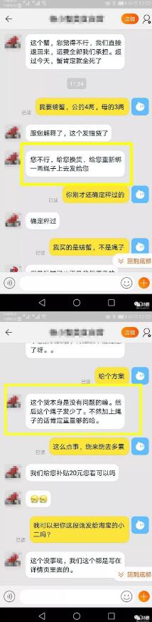 @Dilys182:我之前淘寶上買蟹也碰到過這種賣家,分量嚴重不足,反映完了居然叫我直接放生,視頻拍給他看,然后才同意退錢,我大熱天還專門去找了條河放生,讓我媽旁邊杵著拍視頻,后面就再也不在淘寶買蟹了,寧愿累點跑菜場