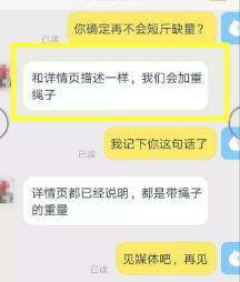 我9月16號網購了所謂的4兩大閘蟹,昨天早上順豐送來以后,發現分量嚴重不足。開始商家不相信,在商家的要求下,我又重新稱了一下,商家又改口說發貨發錯,只同意補20元的差價。又辯解說大閘蟹本來就是含繩子的,現在分量不足,是因為繩子綁少了。