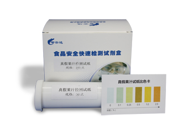 為此智云達推出的這款真假果汁試紙,操作簡單適合家庭及個人使用,將試紙帶色部分浸入果汁中約3秒之后,與標準色階卡比較,就能有效地讀出結果。若試紙為藍色,說明樣品中不含果汁;若試紙呈現綠色或棕色,說明樣品中含有果汁。