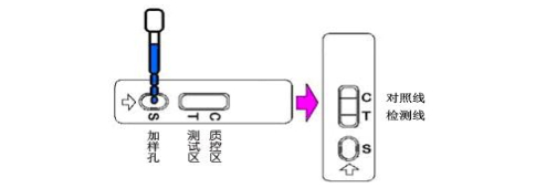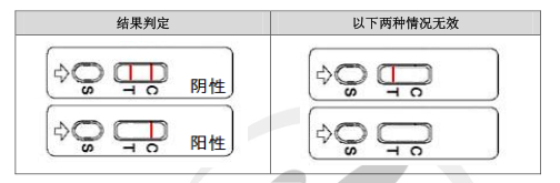 4.結果應在3~5分鐘讀取,10分鐘后結果無效。根據示意圖判定結果。