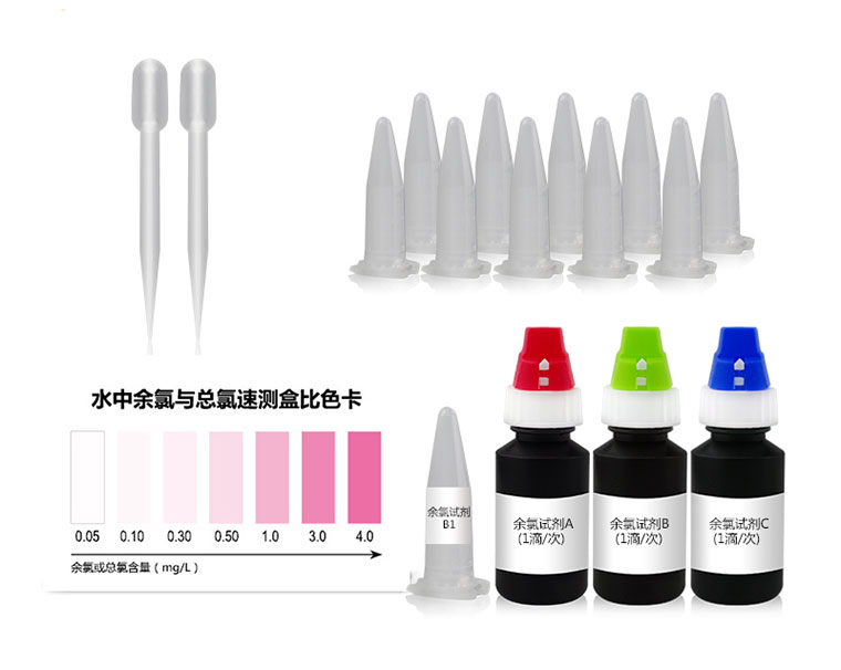 總氯分為游離性余氯(余氯)和結合性余氯。把氯投入水中后,除了與水中有機物、還原物和細菌的殺滅等氧化還原需要消耗的氯以外,水中還剩下的氯,而稱為總氯。游離性余氯,一般指水中的氯分子、次氯酸分子及次氯酸離子。總氯含量減去游離性余氯含量,可得到結合性余氯含量。本試劑盒適用于水中余氯、總氯的現場快速檢測。