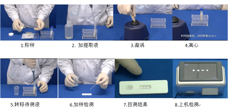 本檢測卡對谷物(小米、玉米、大麥等)及其制品(蛋糕、餅干、面包等)中的DON含量進行快速、定量檢測。不需要任何儀器設備,最低檢測限為100 pbb。