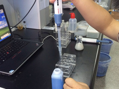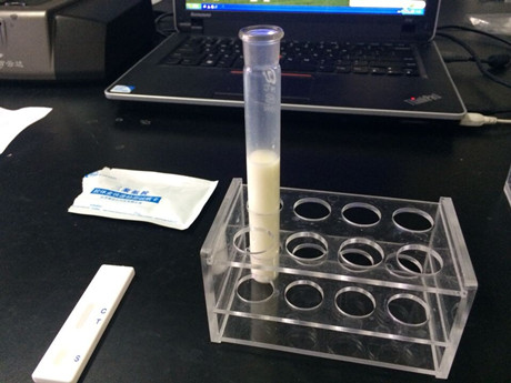 2、用干燥、潔凈的比色管或適當(dāng)容器盛放奶粉,用純凈水1:10稀釋(1份奶粉+10份純凈水),溶解后用于檢測(cè)。