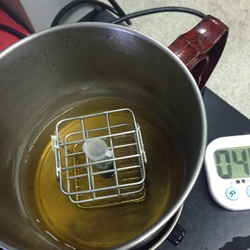 蓋上離心管蓋,放入沸水浴中的托架上加熱 2 分鐘后取出,上下搖動 6 次作為待測液。