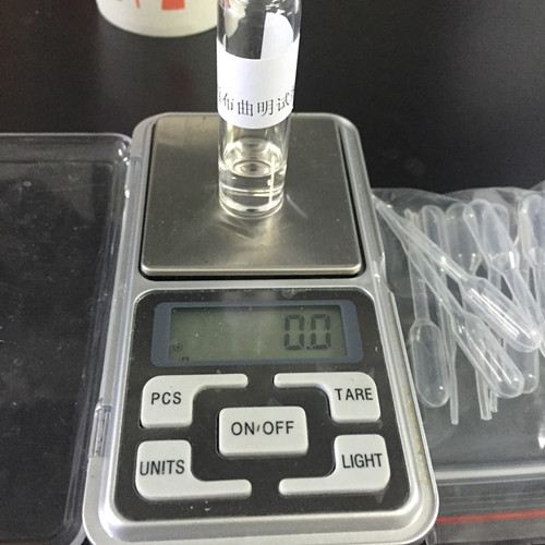 首先我們稱取0.5g剪碎的樣本,放入西布曲明檢測試劑A中,超聲提取5min;