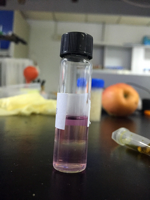 然后用0.5mL吸管吸取試劑A瓶中上層溶液約一半的量至試劑B瓶中;蓋緊B蓋塞子,上下翻轉(zhuǎn)10次(不可劇烈搖,避免乳化無法分層)使其混合,靜置至清晰分層。