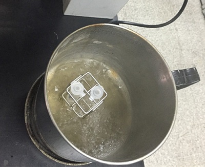 取1 mL蒸餾水于離心管中,再用0.2 mL塑料吸管取已攪拌均勻的蜂蜜1滴加到離心管中。 蓋上離心管蓋,放入沸水浴中的托架上加熱2分鐘后取出,上下?lián)u動(dòng)6次作為待測(cè)液。