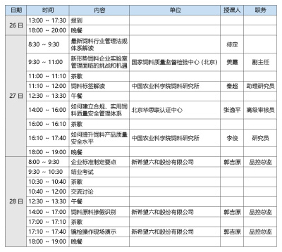 為幫助企業(yè)深入學(xué)習(xí)理解飼料法律法規(guī),了解飼料行業(yè)監(jiān)督檢查情況,使飼料行業(yè)從業(yè)者規(guī)范飼料生產(chǎn)、經(jīng)營行為,強化管理,滿足飼料企業(yè)對新法規(guī)和檢測實驗室管理的需求,解決目前飼料企業(yè)工作中遇到的疑難問題,北京智云達(dá)科技股份有限公司將于2018 年12 月26 日~28 日在北京舉辦“飼料行業(yè)法律法規(guī)培訓(xùn)班”。現(xiàn)將有關(guān)事宜通知如下:
